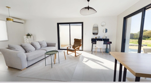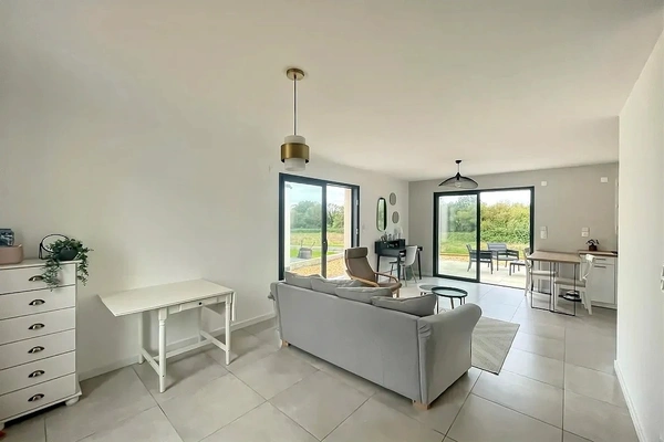 VENDUE en EXCLUSIVITE sur la commune du Bignon. Ne ratez pas cette maison contemporaine de plain pied de 82m2 construite en 2023 avec l'accès aux commerces à pied. Vous y trouverez un lumineux salon/séjour avec placard de rangement, une cuisine ouverte aménagée et équipée ainsi qu'un cellier/buanderie. Côté nuit, un couloir dessert ensuite 3chambres, une salle d'eau ainsi qu'un WC séparé. Depuis le séjour profitez d'une vue très agréable sur la nature (zone protégée non constructible). Chauffage: Pompe à chaleur climatisation réversible Les + de cette maison: RE 2020, Garanties décennales, maison sur vide sanitaire; deux terrasses Assainissement: Tout à l'égout Stationnement possible de plusieurs véhicules devant la maison. Une visite virtuelle est disponible sur demande. Les informations sur les risques auxquels ce bien est exposé sont disponibles sur le site Géorisques: http://www.georisques.gouv.fr Ne tardez pas, contactez Clémence BERNARD au 06-99-29-18-93 et venez la visiter. Votre agent commercial Noovimo inscrit au RSAC de Saint-Nazaire sous le No 879870244 Annonce rédigée et publiée par un agent mandataire. 1 - Annonce rédigée et publiée par un Agent Mandataire -